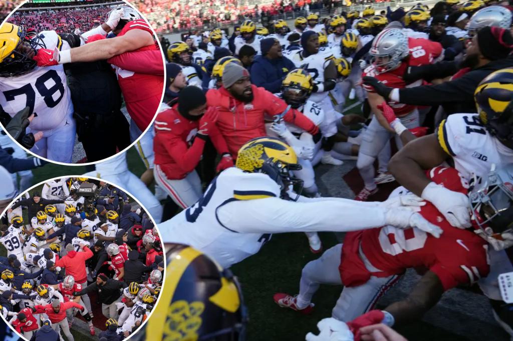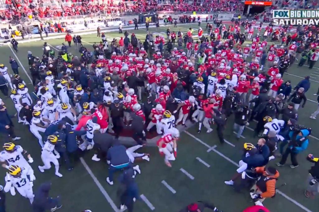Michigan-Ohio State game ends in ugly brawl after flag-planting try