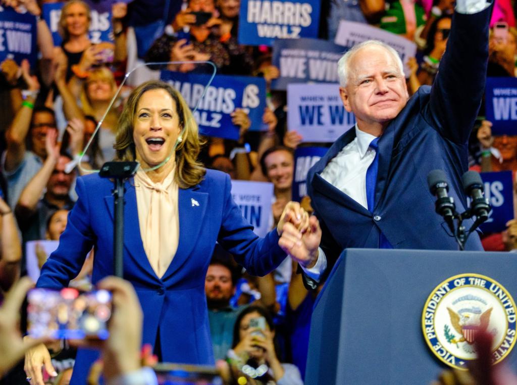 Harris and Walz host first Midwest rally on first full day as Dem ticket