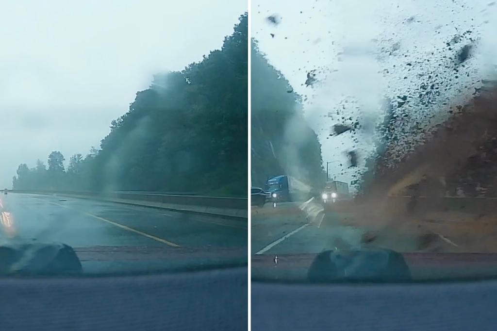 A couple driving through North Carolina's Blue Ridge Mountains narrowly escaped being washed away by a landslide caused by the remnants of Hurricane Helen. Alan and Kelly Keffer captured the moment the mudslide ripped off the back of their car on their dashboard camera. Dashcam footage shows a couple narrowly avoiding a mudslide on a […]