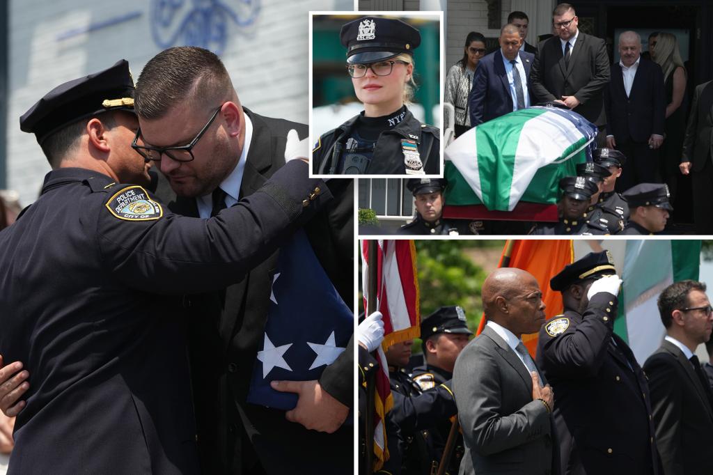 Scores of mourning NYPD officers pay final respects at funeral for cop killed by alleged drunk driver who plowed through LI nail salon