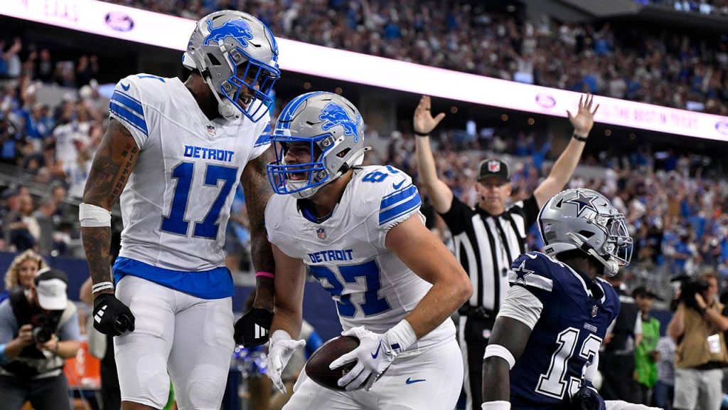 Lions’ nifty flea-flicker leads to 52-yard touchdown pass from Jared Goff to Sam LaPorta