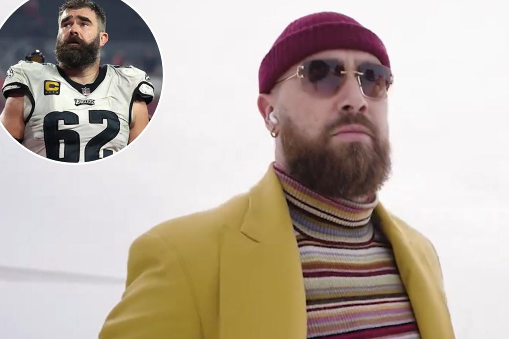 Jason Kelce mocks brother Travis’ outfit for Chiefs’ playoff trip