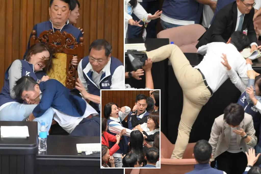 Taiwan lawmakers erupt into massive brawl during parliament session