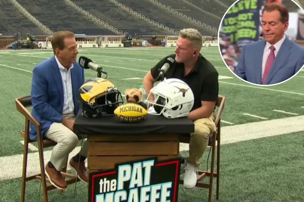 Nick Saban cringes while Pat McAfee dances in his seat on ESPN’s ‘College GameDay’