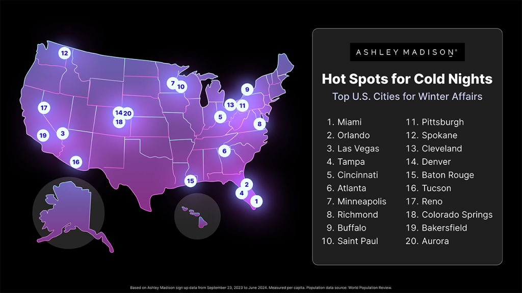 Ashley Madison reveals top 20 American cities for scandalous, adulterous behavior this winter