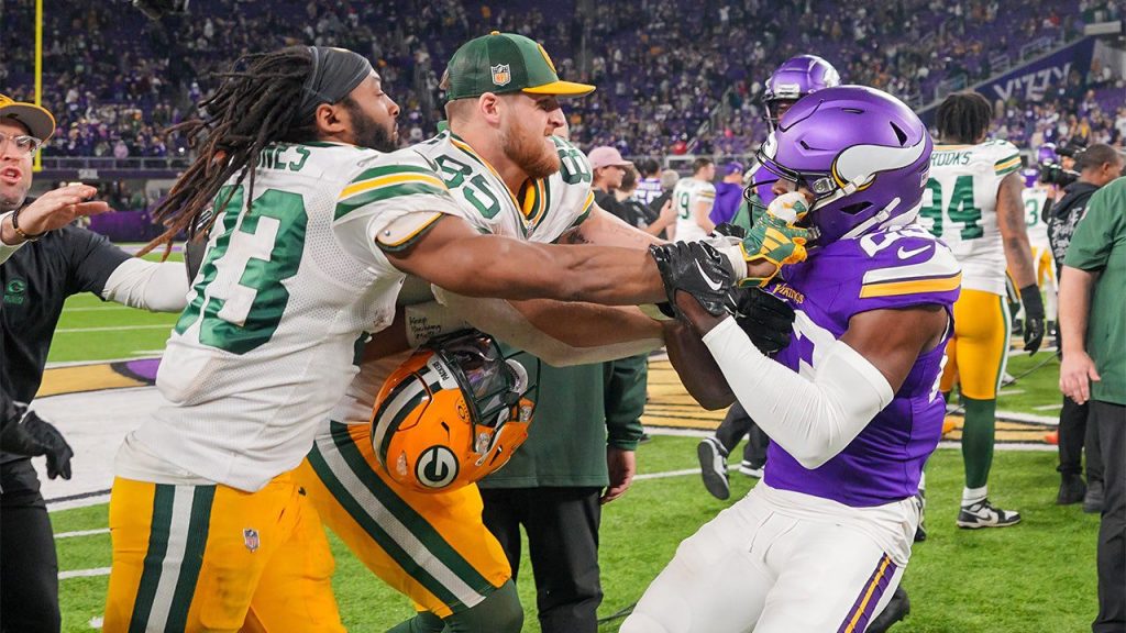 Packers’ Aaron Jones struck in face during postgame scuffle with Vikings