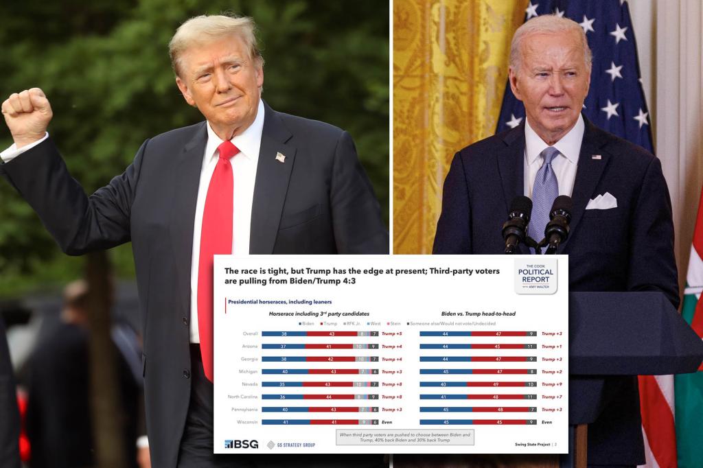 Trump leads Biden in six swing states and tied in a seventh: poll