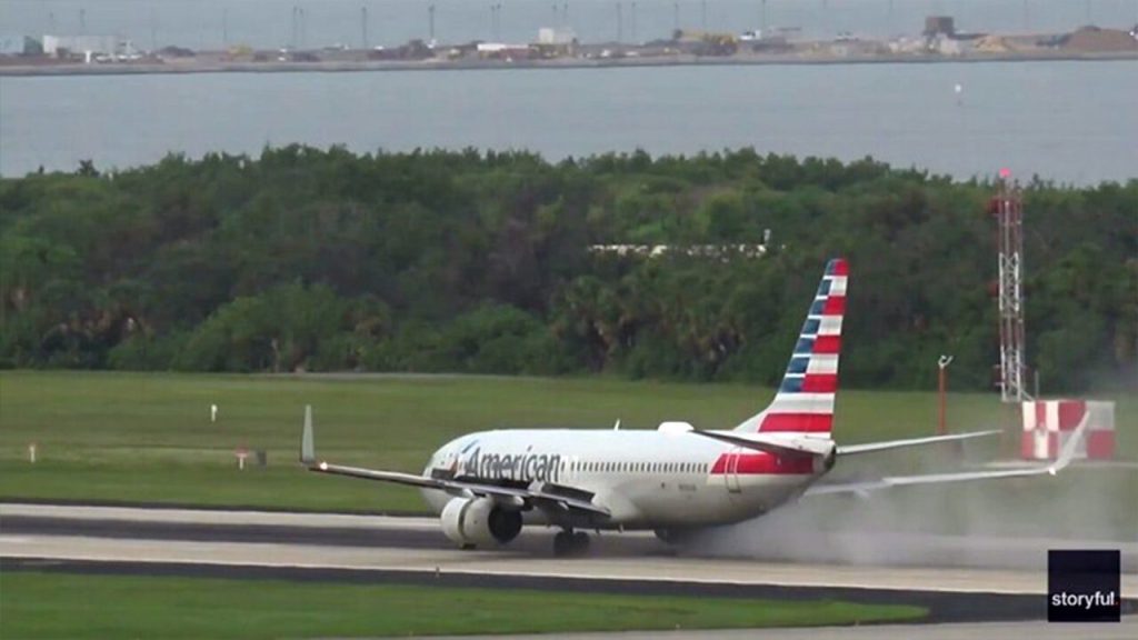 American Airlines aircraft blows tire in smoke-filled, fiery runway incident