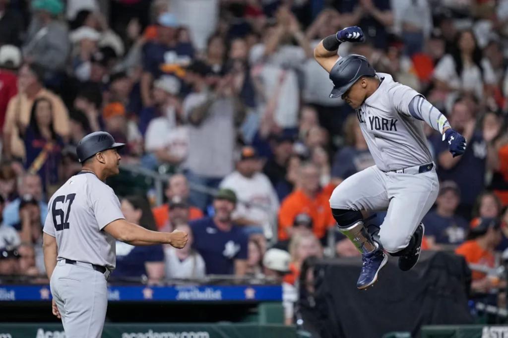 Juan Soto received an official Yankees welcome on John Sterling’s home run call. The Yankees outfielder hit a shot off Astros relief pitcher Brian Abreu over the left-field wall in the seventh inning, hitting his first home run for the Yankees and giving the Bronx Bombers the lead. As Soto crushed the ball and circled […]