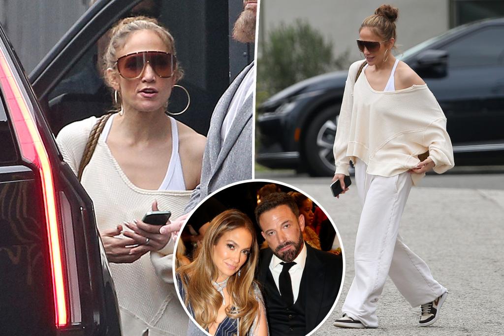 Jennifer Lopez was all smiles on Friday as she was spotted entering a dance studio in Los Angeles amid rumors of her divorce from Ben Affleck. The superstar flashed a beaming smile in wide-leg white sweats, a cream-colored off-the-shoulder top and matching sneakers. She wore her hair in a high bun and looked ready to […]