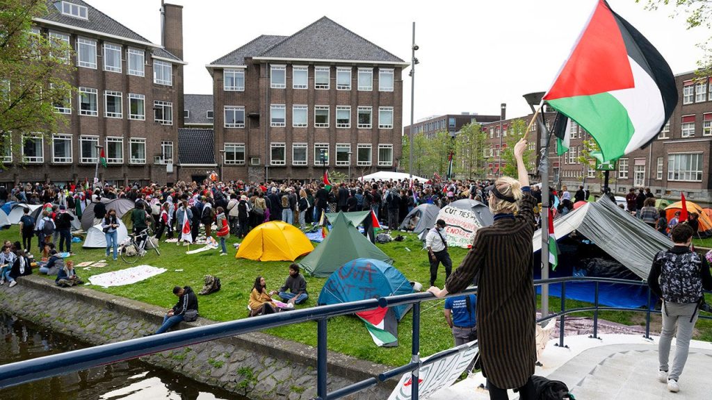 Anti-Israel encampment sprouts up at University of Amsterdam in the Netherlands