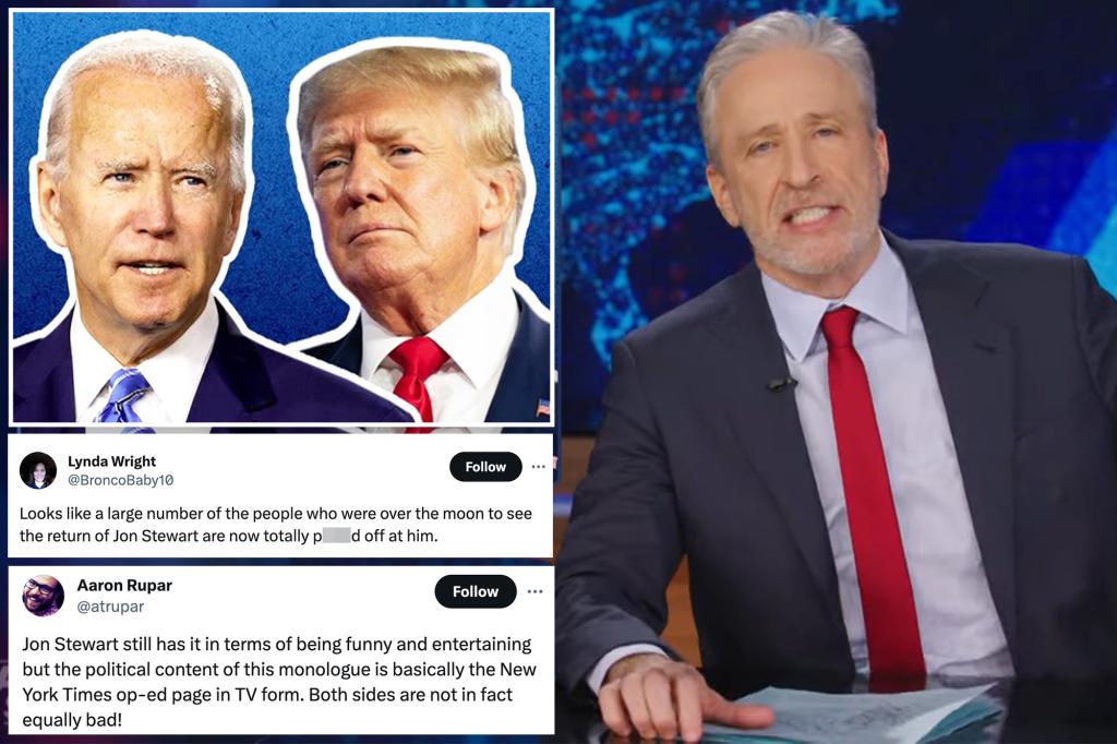 Jon Stewart’s long-awaited return to “The Daily Show” sparked anger among left-leaning viewers after he spent much of the show questioning President Joe Biden’s mental state. To begin his return from a nine-year hiatus, Stewart took aim at the 81-year-old Biden on Monday within three minutes of his Comedy Central show’s 11 p.m. Stewart, 61, […]