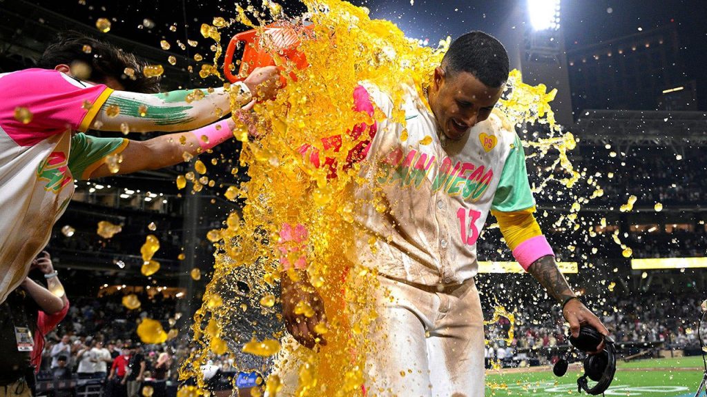 Overzealous Padres fan tackled by security trying to get a selfie with Manny Machado after walk-off homer