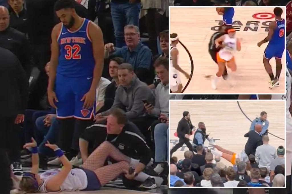 Two women tackled on court at Knicks-Timberwolves game as Karl-Anthony Towns watches