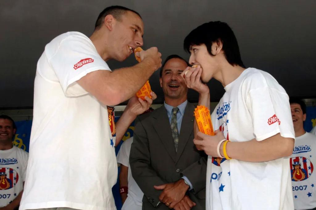 Joey Chestnut dominates Takeru Kobayashi in record-setting hot dog eating showdown