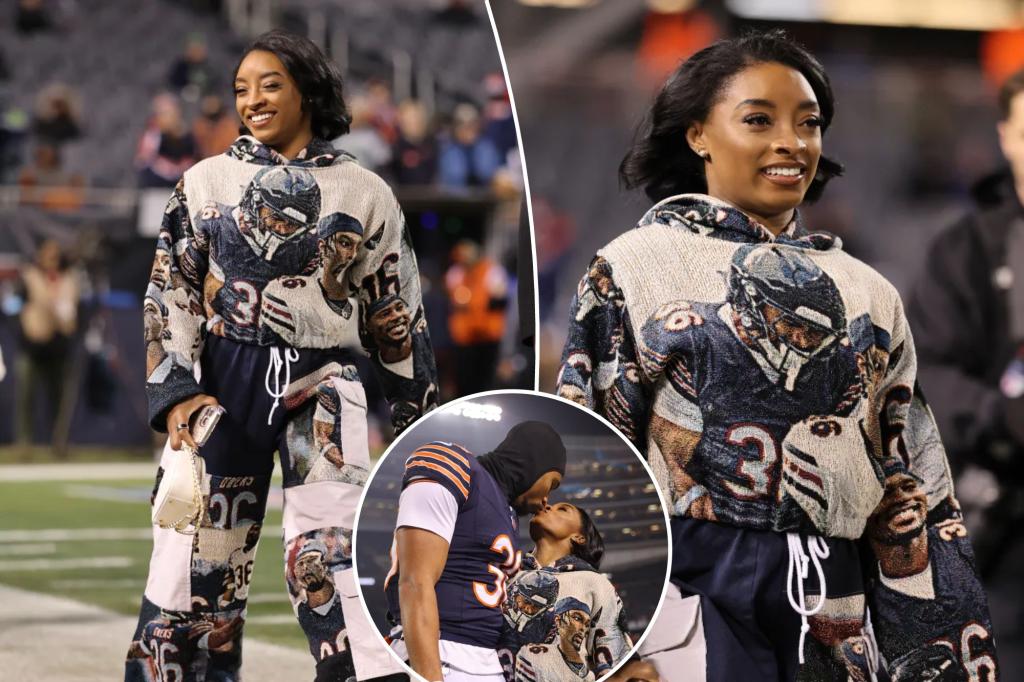 Simone Biles stole the show before the Seahawks beat the Bears 6-3 on Thursday night in Chicago. The superstar gymnast, who is married to Bears safety Jonathan Owens, wore a custom Kelly Daly hooded sweatshirt featuring Owens and No. 36 and matching pants on the Soldier Field sideline. Dressed well. Biles, who won four medals […]