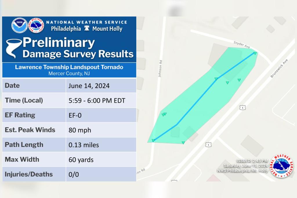 Severe thunderstorms pounded the state with heavy rain and winds on Friday afternoon, and a tornado struck Mercer County, New Jersey. The tornado, with winds reaching up to 80 mph, touched down near a Conoco gas station in Lawrence Township, Fox Weather meteorologist Cody Blood said. The tornado was brief, traveling just under 229 yards […]