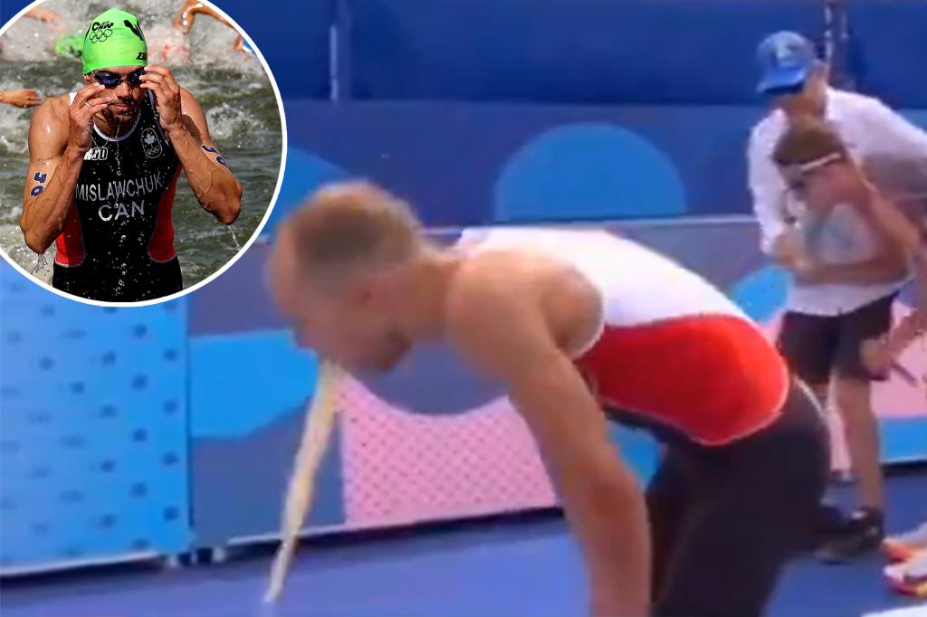 Canadian Triathlete Tyler Mislawchuk Throws Up After Emerging from the Seine River at Paris Games