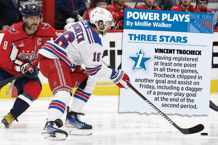 Highlights of the Rangers’ Game 3 victory that gave them a commanding 3-0 series lead over the Capitals: 3 stars 1. Vincent Trocheck Trocheck, who has scored at least one point in all three games, had another goal and an assist on Friday, including a power-play goal late in the second period. Vincent Trocheck is […]