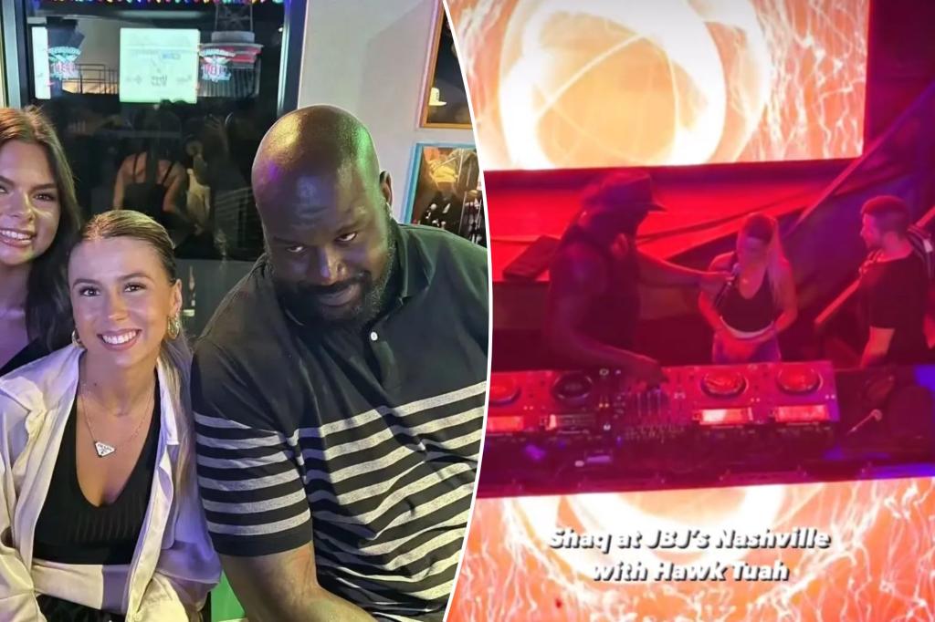 Shaq parties with ‘Hawk Tuah Girl’ during DJ set in Nashville