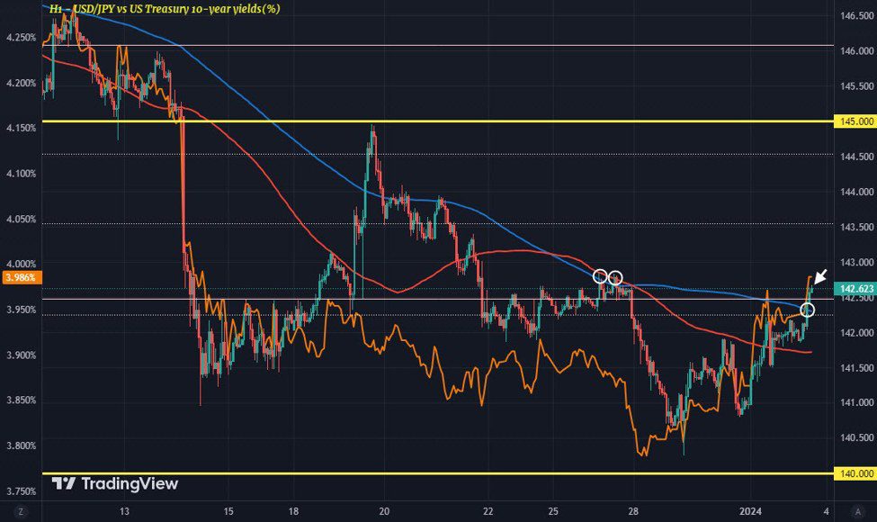USD/JPY movements continue to be heavily linked to movements in bond yields, and more specifically US Treasury yields. This is evident in the hourly chart below. USD/JPY vs. US government bond 10-year yield (%) hourly chart The recovery of the 10-year bond yield to near 4% has also led to a rebound in USD/JPY from […]
