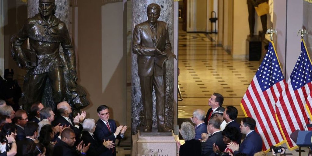 Billy Graham, the famed evangelist whose movement reached hundreds of millions of people, was formally honored Thursday at the U.S. Capitol. A seven-foot statue depicting Mr. Graham’s likeness was unveiled. Inside National Statuary Hall The ceremony was attended by Graham’s family, House Speaker Mike Johnson (Republican), North Carolina Governor Roy Cooper (Democratic), former Vice President […]