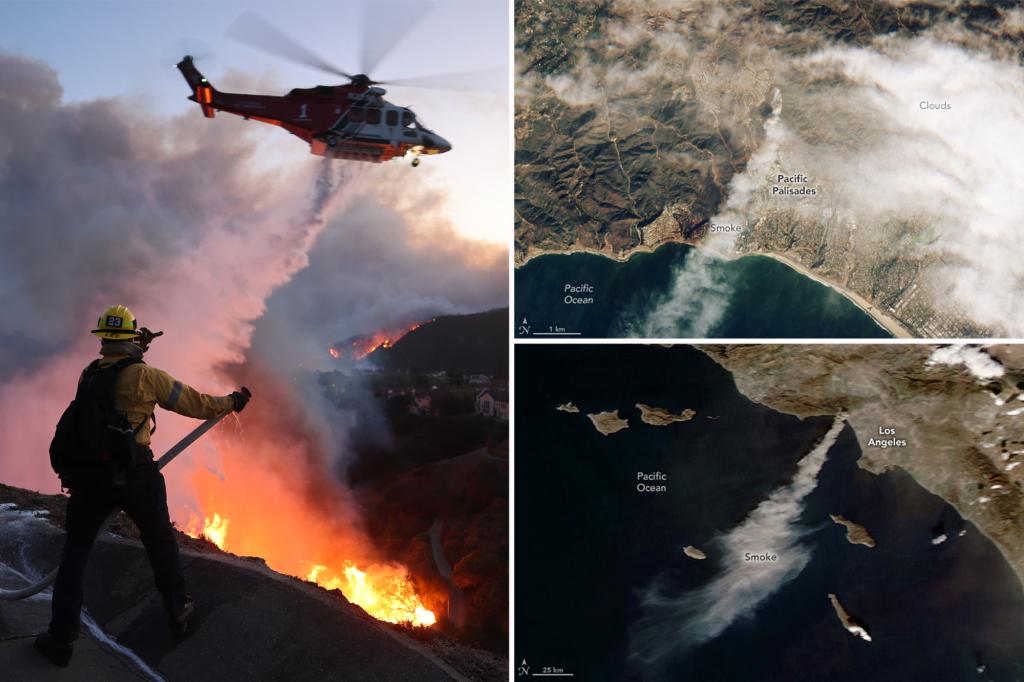 Disastrous satellite images taken by NASA show the Los Angeles wildfires spiraling out of control from space. An image taken by NASA's Sentinel 2 satellite after the Palisades Fire broke out Tuesday morning shows a thick band of gray smoke floating over Los Angeles County and blowing all the way to the coast. According to […]