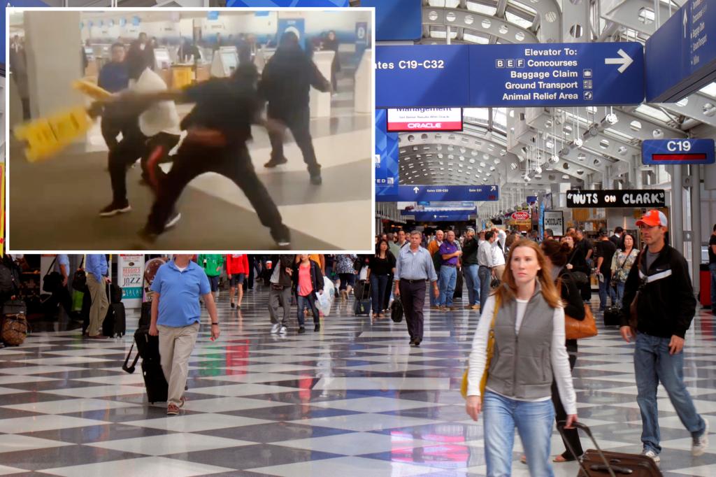 Travelers hit each other with ‘wet floor’ signs in wild brawl at Chicago’s O’Hare: video