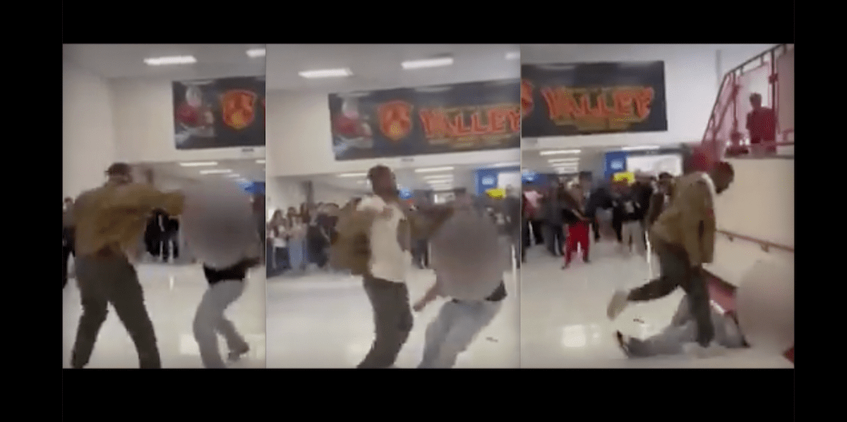 a Longer raw video of the fight It shows a smaller student continuing to chase and swing his larger teacher around, even though the teacher easily knocks him to the floor not once, but twice. Other students intervened and the teacher walked away through the crowd of onlookers.