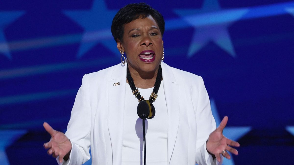 National Education Association President Rebecca S. Pringle speaks during the fourth day of the Democratic National Convention (DNC) at the United Center on August 22, 2024 in Chicago, Illinois. (Reuters/Mike Seeger)