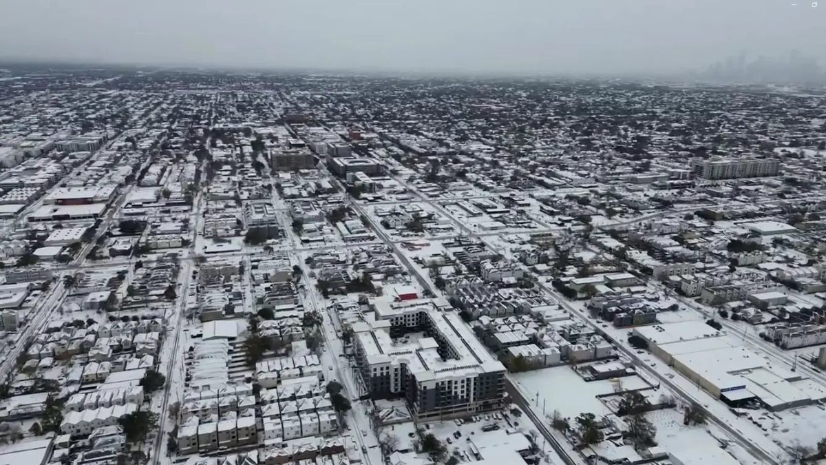 Drone video captured snow covering Houston, Texas. (David Maldonado)