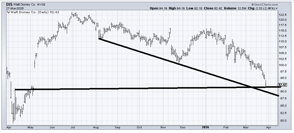 It’s hard to say what it might take to make Disney (DIS) appealing again. It’s a solid chart, but it’s quite oversold right now. Closing the gap from last year, there’s some support in the 88-92 range, presenting an opportunity for an oversold rally.