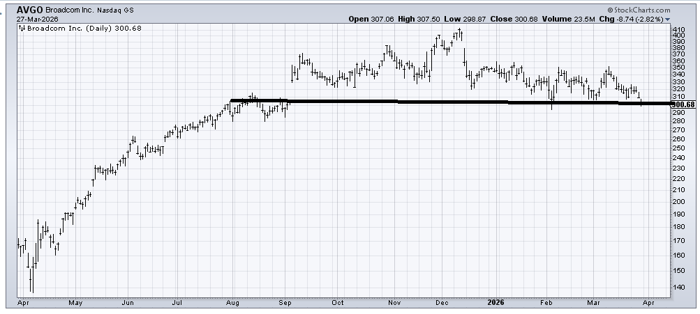 Broadcom (AVGO) continues to seem like an elusive target for me. I feel that their breakout will be the final step. It’s worth noting that both of these stocks are experiencing peaks. So while a panic breakout could boost trading, it doesn’t necessarily signal medium-term bullishness unless these levels are reclaimed quickly.