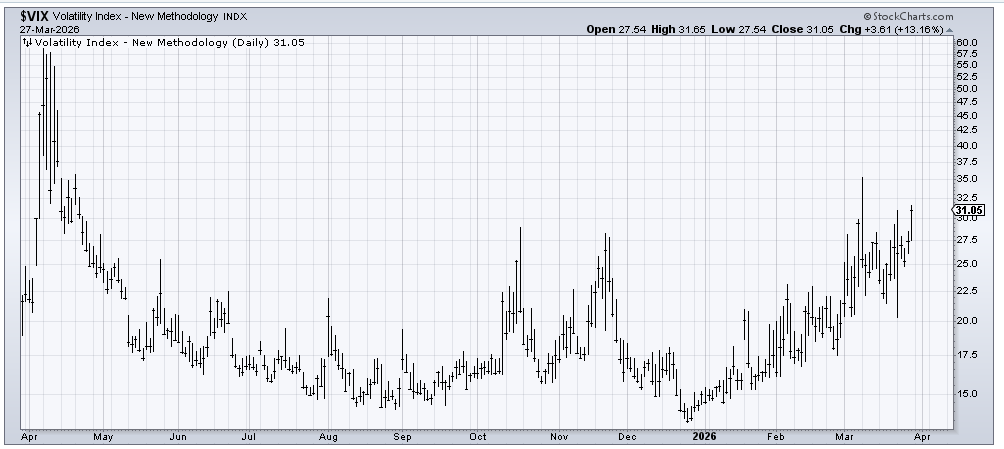 Turning to sentiment, there may be a significant shift in the Investors Intelligence survey this Wednesday. I always prefer to see more bears than bulls, ideally with a ratio of bulls to bears below 1. Right now, it stands at 1.57. While it’s come down from 4.2 in early February, it still can’t be labeled extreme. I don’t expect it to drop below 1.0 this week, though it might get close.