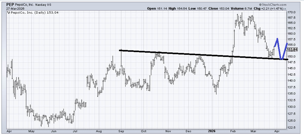 Is it time to reassess Pepsi (PEP) ? I think the 145-150 range is probably an appealing price, but I might sketch something like in blue.