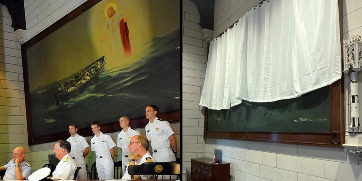 The painting, entitled “Christ on the Water,” dates back to the 1940s and was created to honor the Mariners lost at sea during World War II. However, in early 2023, the Military Religion Freedom Foundation sent a letter to then-Directed Transportation Director Pete Buttigigue, calling the artwork “a sectarian painting that demonstrates the superiority of Jesus Christ,” and Request to be deleted As unconstitutional support for religion.