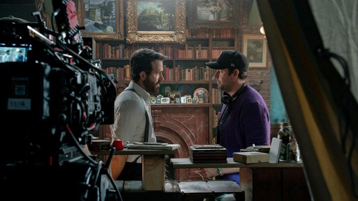 This image released by Paramount Pictures shows Ryan Reynolds (left) and director John Krasinski on the set of IF. (Johnny Cournoyer/Paramount Pictures, via AP)