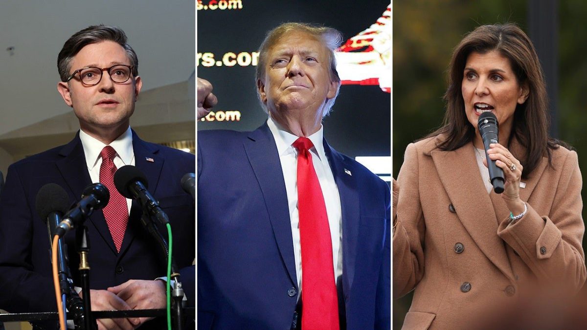 House Speaker Mike Johnson expressed solidarity with former President Trump on Monday, a day before former United Nations Ambassador Nikki Haley announced she would not be withdrawing from the 2024 race. (Getty Images)