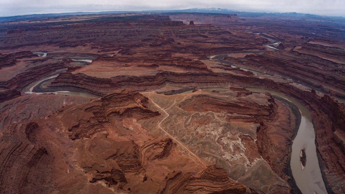 An aerial view of Canyonlands National Park. Several hikers are believed to have died in recent weeks in the western US due to extreme heat, including a father and daughter who became lost in Canyonlands National Park where temperatures reached triple digits. (Joe Soam/Visions of America/Universal Images Group via Getty Images)