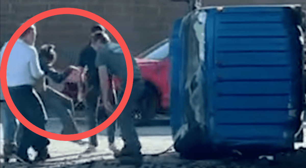 As the man's car approaches the crime scene and the car slows down, a man's voice can be heard saying, “Oh, they're trying to take him out,” and two men standing in the road are seen driving the car. It looked like he was looking into the table. An overturned truck. (Related: Hero FedEx driver rescues man from fiery crashed vehicle)