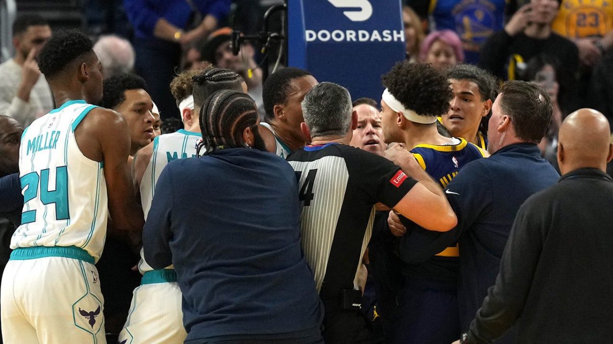 A skirmish broke out between Warriors and Hornets players late in Golden State’s 97-84 win over Charlotte on Friday night.