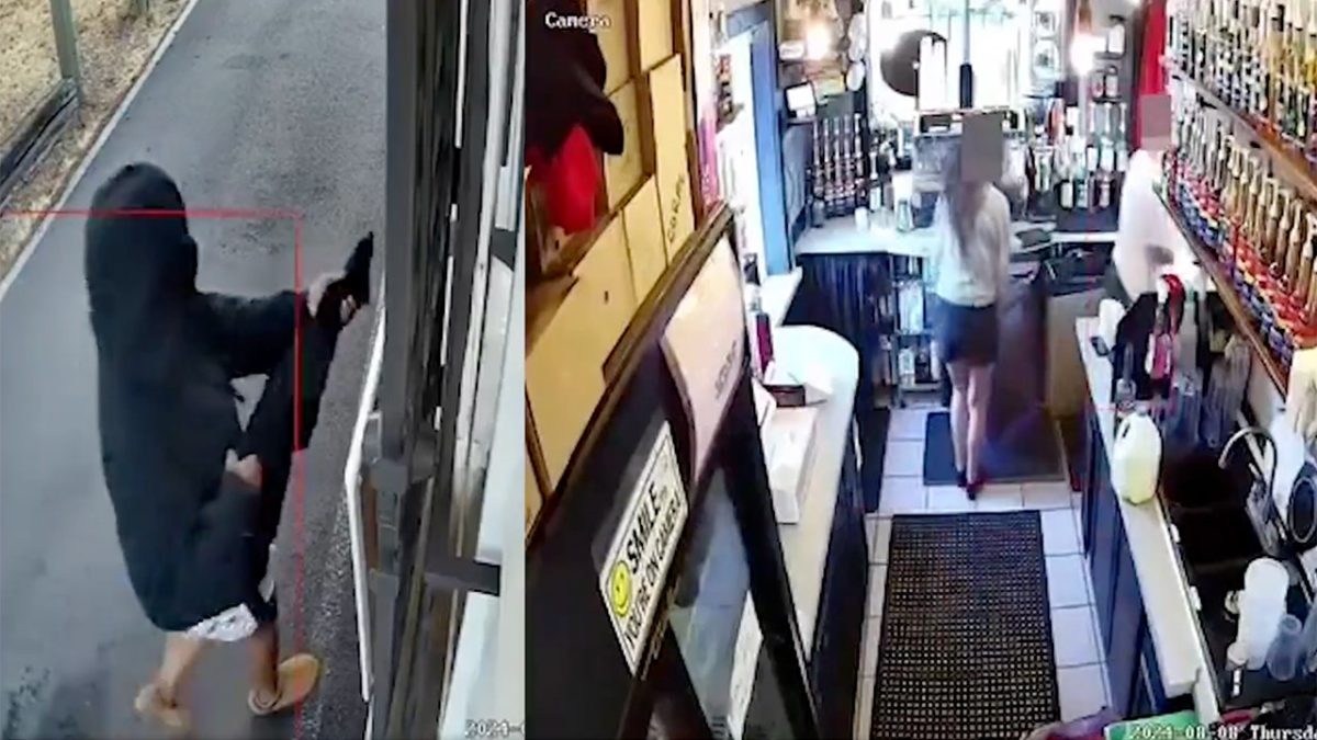Surveillance camera footage showed the suspect forcefully pointing a weapon at the coffee stand’s window. (The Jason Lantz Show/Fox News)