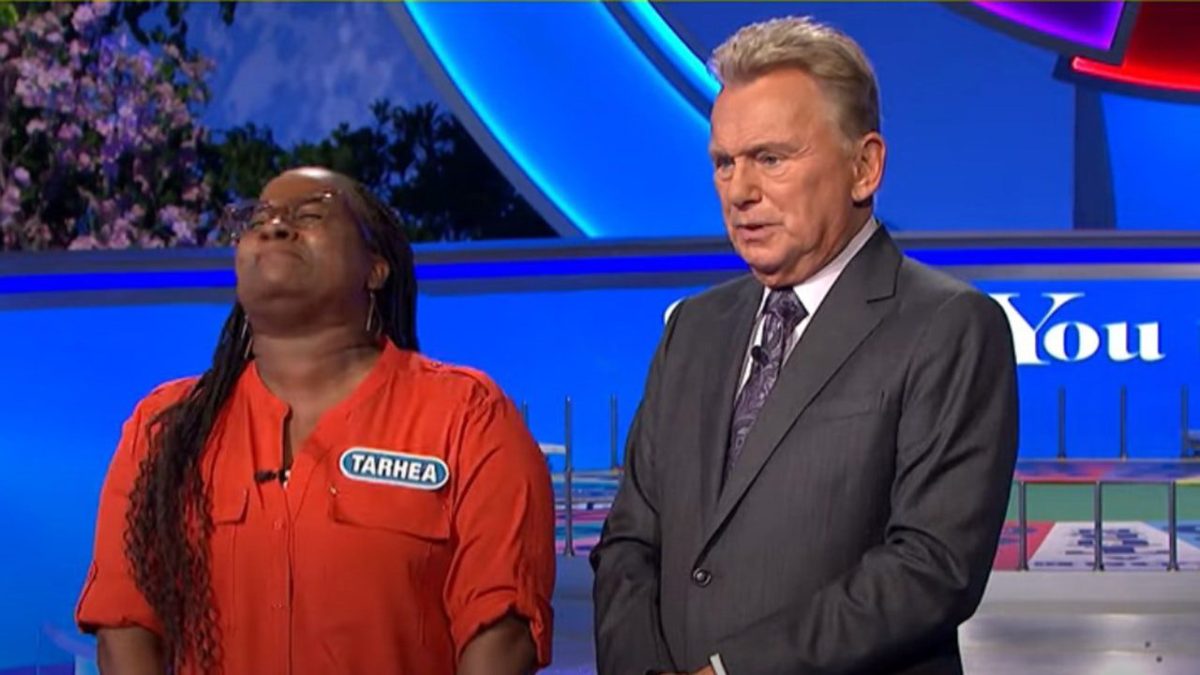 “You know a lot of stores are getting rid of the correct spelling, and maybe you are too…” host Pat Sajak said, as Talhair screamed.