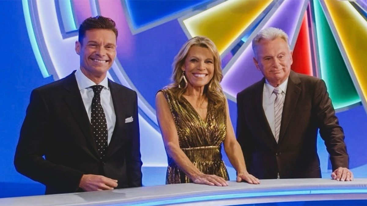 Ryan Seacrest was welcomed onto the set of “Wheel of Fortune” by Vanna White and Pat Sajak. (ABC)