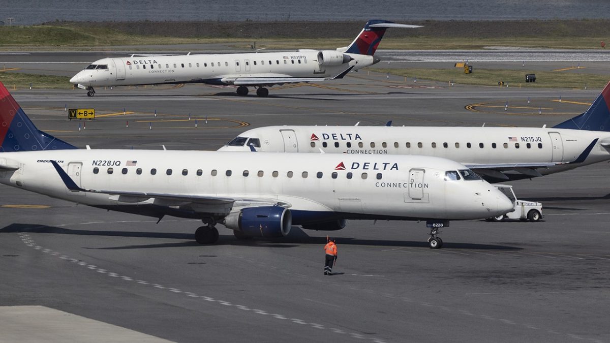 A delta plane in the tarmac at Lagardia Airport (LGA) in New York. (Angus Medanto/Bloomberg via Getty Images)
