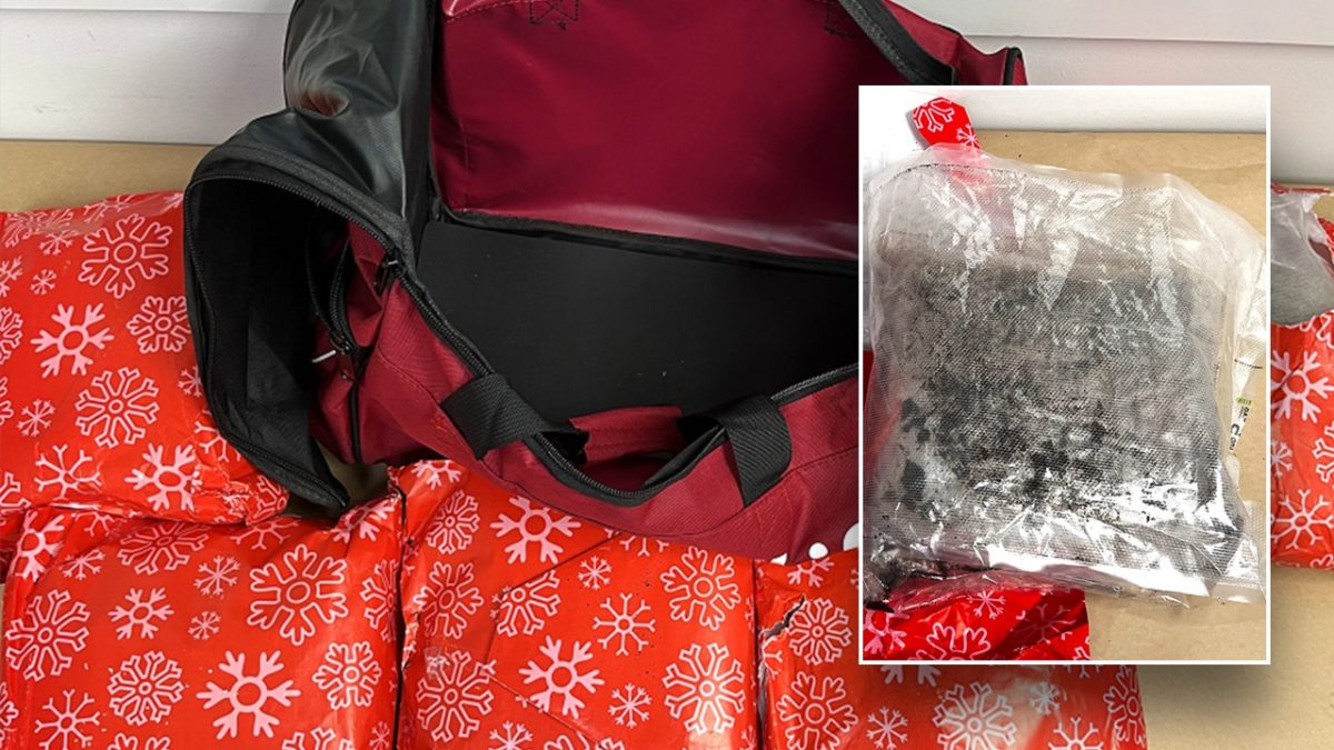Upon landing, officers questioned the woman and searched her carry-on duffel bag, where they discovered more than 22 pounds of methamphetamine hidden under brightly wrapped snowflake wrappers. Ta.
