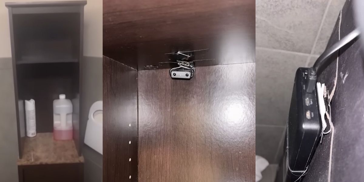 “It was aimed directly at the toilet, so they were definitely aiming to record people using the toilet and people’s private parts,” the woman added.