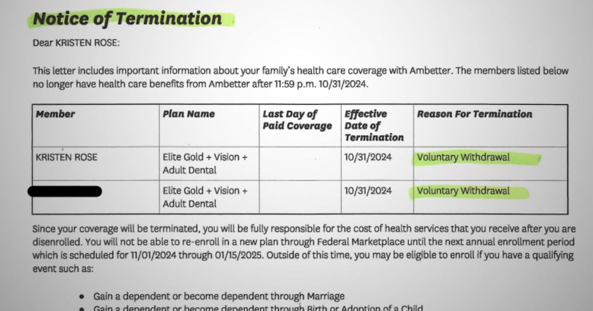 “I said I voluntarily retreated, but it was wrong. I would never have done it before. Then I learned that it was Healthcare.gov that voluntarily retreated me, and my insurance stopped immediately,” Rose said.