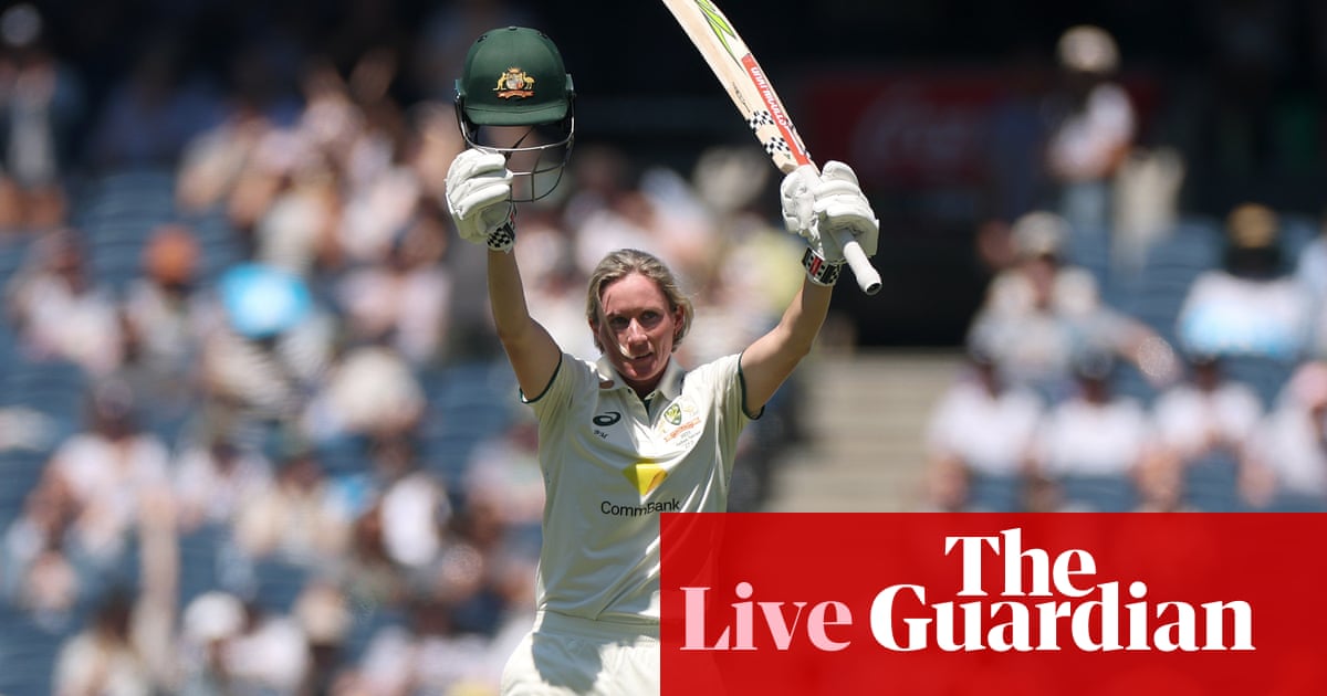 “,”elementId”:”23aa5a36-a040-4032-bf44-033cce3d5822″},{“_type”:”model.dotcomrendering.pageElements.RichLinkBlockElement”,”prefix”:”Related: “,”text”:”Sutherland century turns screw on wretched England in Women’s Ashes”,”elementId”:”4a979a47-f419-4e9a-856b-27aa97029886″,”role”:”thumbnail”,”url”:”https://www.theguardian.com/sport/2025/jan/31/australia-england-womens-ashes-test-cricket-day-two-report”},{“_type”:”model.dotcomrendering.pageElements.TextBlockElement”,”html”:”